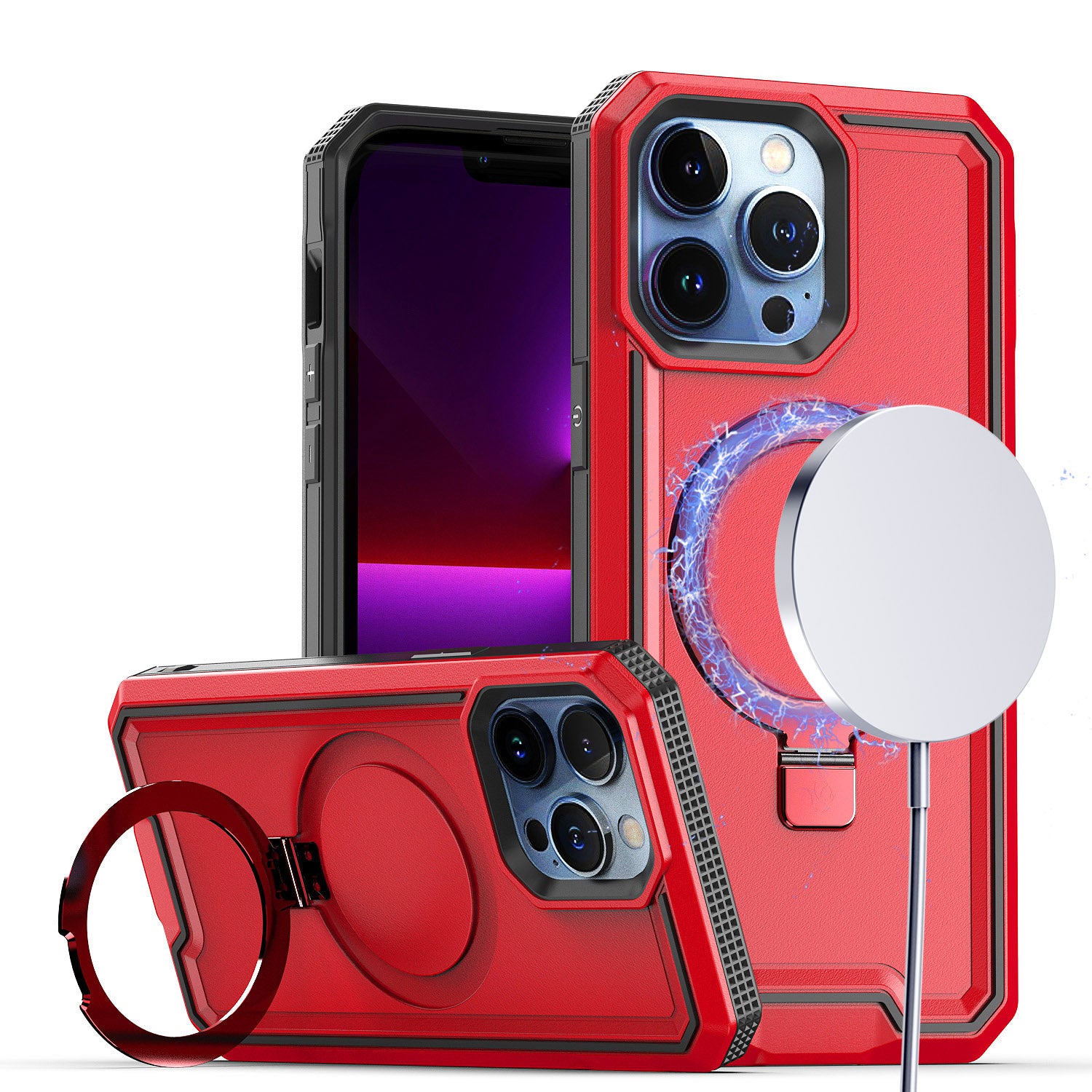 iPhone 13/14 Red Magnetic Kickstand Tough Hybrid Case