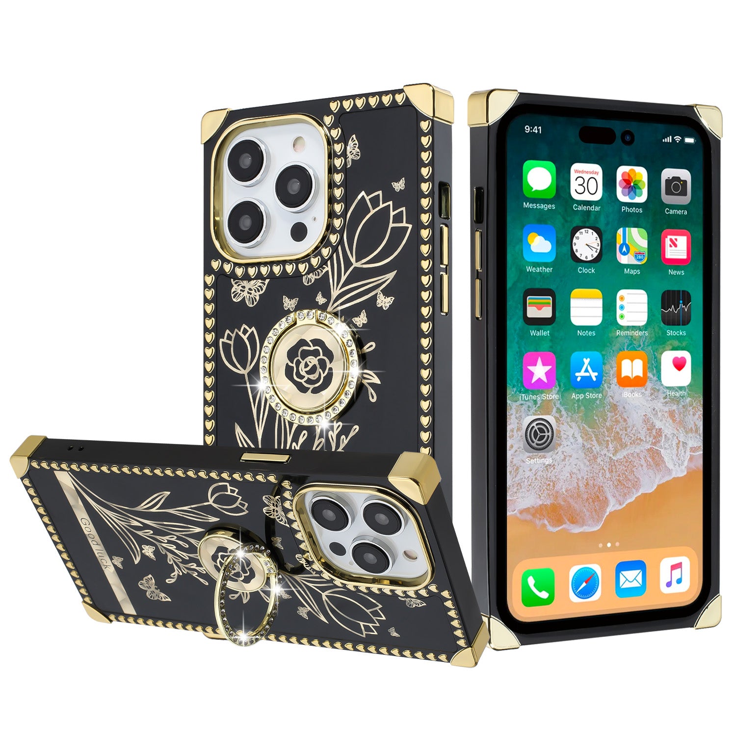 The iPhone 15 Pro Black Chrome Glitter Ring Stand Case is where elegance meets utility. Designed with sparkling glitter accents over a glossy black chrome finish, this case instantly elevates the style of your device. More than just good looks, it’s built to protect against scratches, bumps, and everyday drops. The integrated ring stand provides extra grip to reduce slips and doubles as a convenient kickstand for hands-free media viewing or video calls. Crafted from high-quality materials, it ensures a slim yet durable fit without adding unnecessary bulk. Precision cutouts allow easy access to all buttons, ports, and cameras, ensuring full functionality without compromise. Ideal for those who want their iPhone 15 Pro to shine, this glittery case blends premium aesthetics with dependable protection, making it a perfect balance of fashion and practicality. Carry your phone with confidence and eye-catching style.