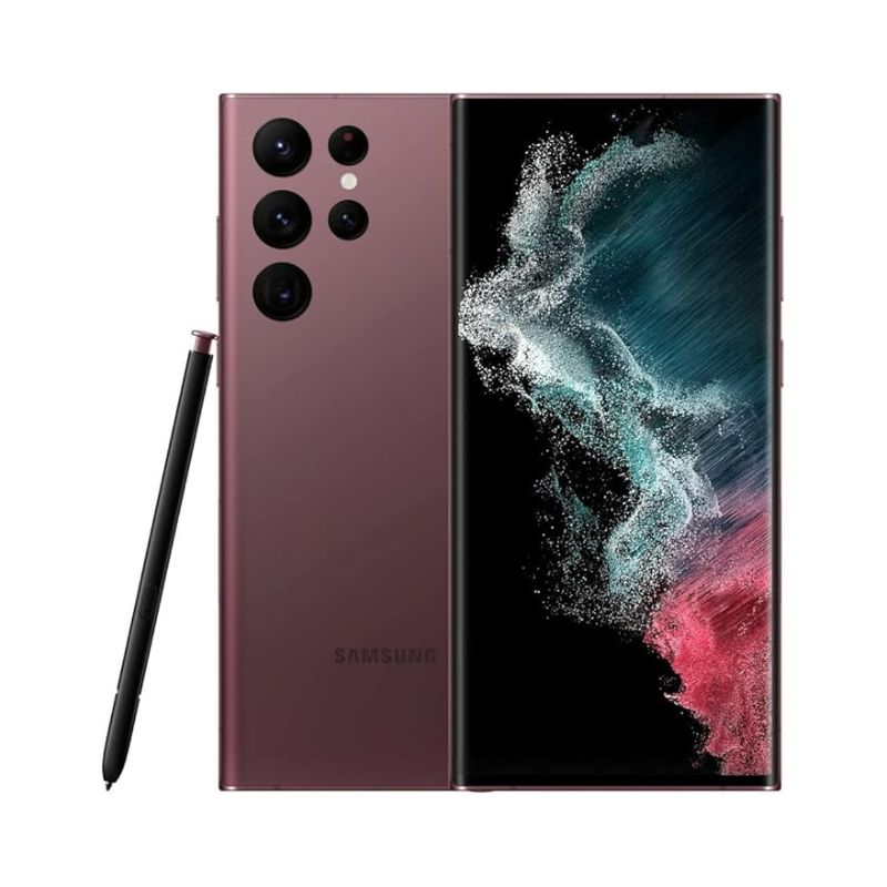 The Samsung Galaxy S22 Ultra 256GB Burgundy Unlocked offers premium performance and an elegant burgundy design that makes a statement. With its integrated S Pen, it allows you to sketch, take notes, and control functions seamlessly, making it ideal for productivity and creativity. The expansive 6.8-inch Dynamic AMOLED 2X display delivers vibrant colors and ultra-smooth visuals, perfect for work and entertainment. With 256GB of storage, it offers plenty of space for photos, videos, apps, and documents. Its advanced quad-camera system includes a 108MP main sensor and 100x Space Zoom for professional-quality photography and 8K video. Powered by a high-speed processor and 5G connectivity, it ensures ultra-fast performance and smooth multitasking. Unlocked for global use, it offers maximum carrier flexibility. A robust battery with fast and wireless charging keeps you going all day. The Galaxy S22 Ultra Burgundy is stylish, versatile, and built for power users.
